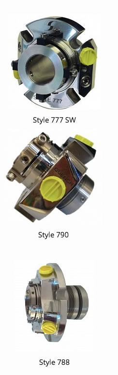 La primera y única linea de sellos sin camisa en el mercado. Ninguna parte del sello dentro de la caja estopa, elastómero dinámico en la cara en material cerámico, resortes multiples fuera del fluido, la cara estacionaria cónica evita la acumulación de partículas solidas y aumenta la tolerancia al desajuste; cara rotante monolítica, cara estacionaria monolítica balanceada hidraulicamente, dimensiones compactas, elastomero estático, con función de amortiguador